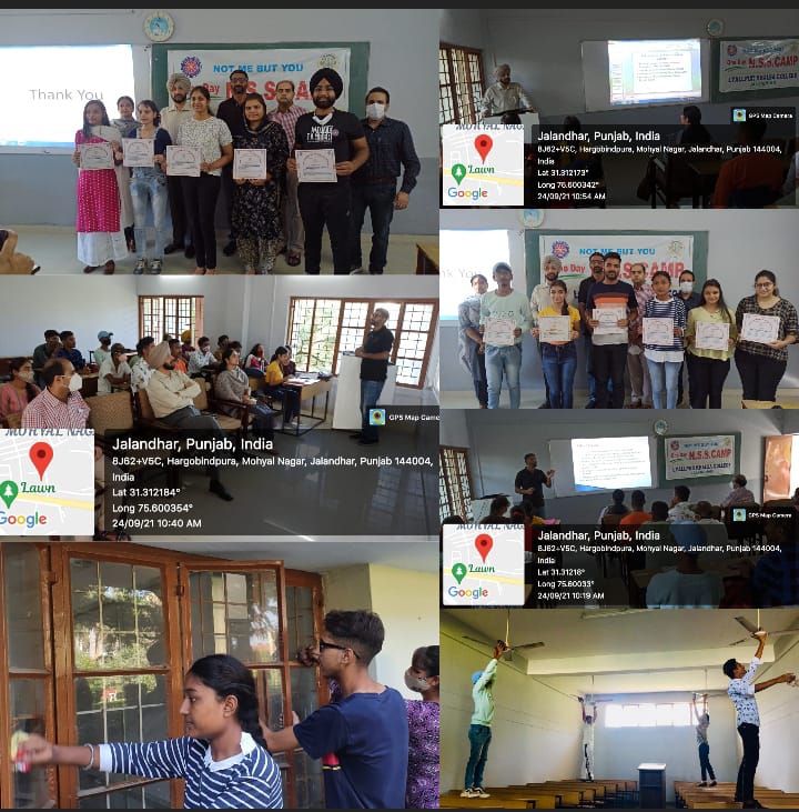 इस एक दिवसीय शिविर के तहत छात्रों द्वारा सफाई अभियान भी चलाया गया जिसके तहत स्वयंसेवकों ने कॉलेज परिसर की सफाई की। मंच प्रबंधन की भूमिका स्वयंसेवकों नंदनी और साक्षी शर्मा ने निभाई। कार्यक्रम का आयोजन एनएसएस ने किया। कार्यक्रम अधिकारी डाॅ. प्रियांक शारदा, डॉ. अमनदीप कौर व डॉ. नवनीत अरोड़ा ने अहम भूमिका निभाई।